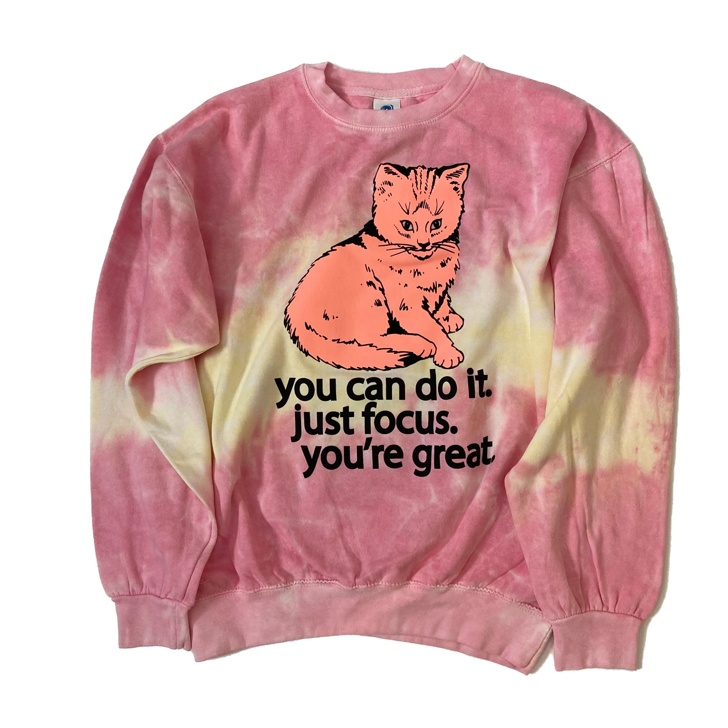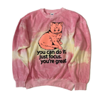 Peach Cat printed on a 80/20 unisex Colortone tie-dyed sweatshirt