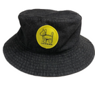 Overwhelmed Dog patch on a graphite denim bucket hat.