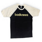 Gold badknees print on a unisex black tee with short white sleeves. 100% cotton.